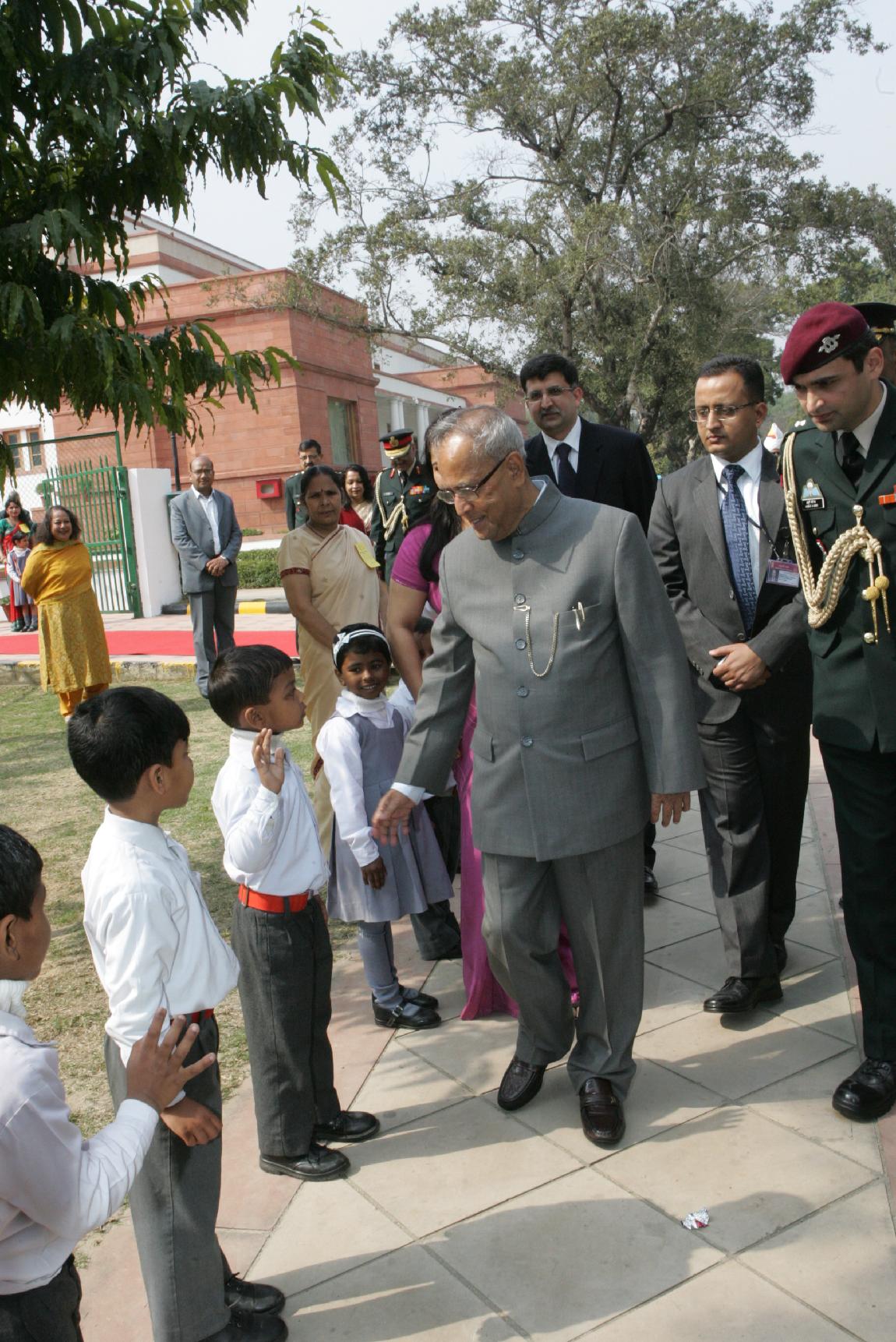 The President of India, Shri Pranab Mukherjee Launching Mid-day Meal Scheme for Nursery and KG Classes Childrens at Kalyan Kendra of Rashtrapati Bhavan in New Delhi on February 15, 2013