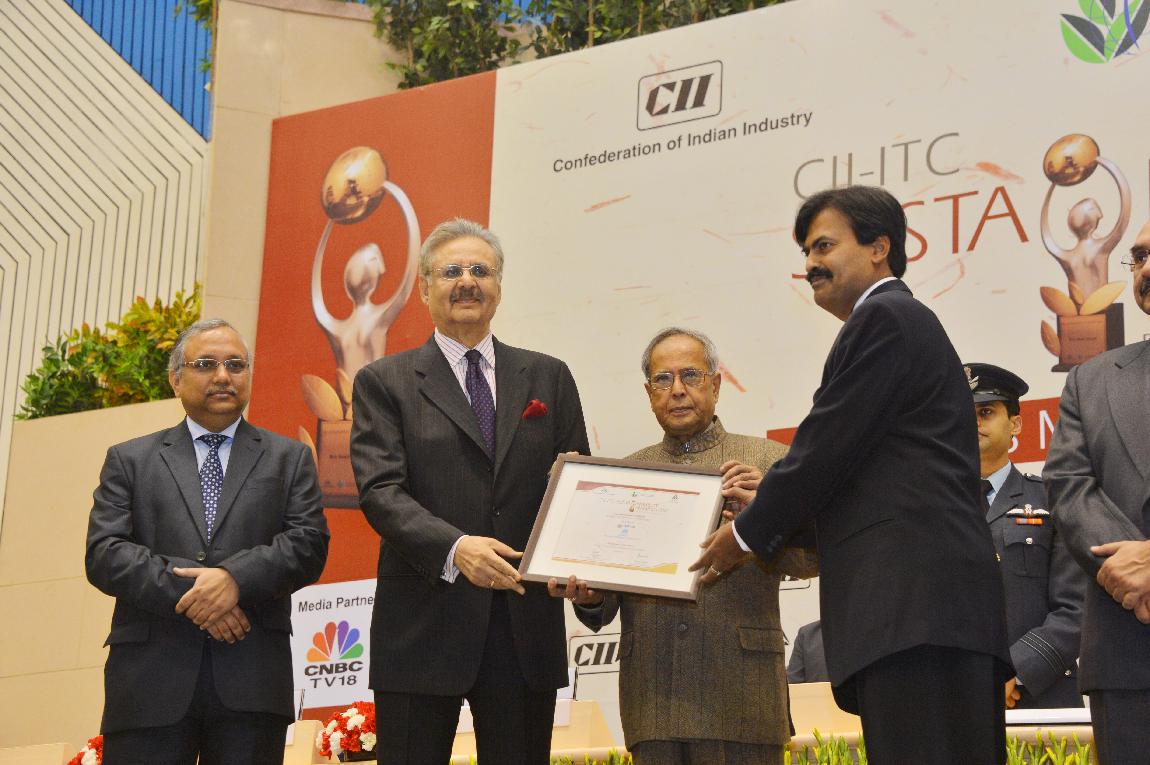 The President of India, Shri Pranab Mukherjee Presenting the CII-ITC Sustainability Awards 2012 on 14 Jan 2013