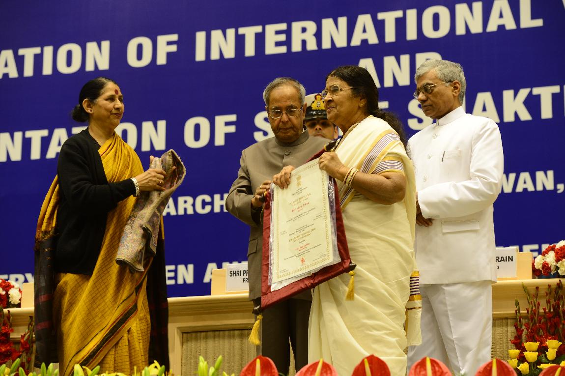 The President of India, Shri Pranab Mukherjee Presenting the Stree Shakti Puraskar for the Year on the Occasion of International Women s Day at Vigyan Bhavan on Mar 08, 2013