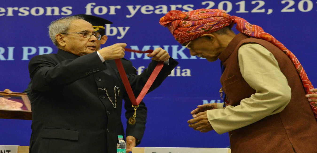 The President of India, Shri Pranab Mukherjee presenting the National Awards and Shilp Guru Awards for the Year 2012, 2013 & 2014 to Handicraft Artisans, in New Delhi on December 09, 2015.