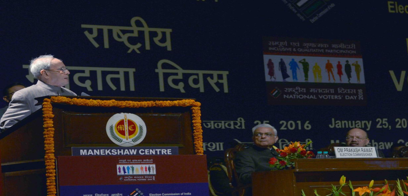 The President of India, Shri Pranab Mukherjee addressing the 6th National Voters' Day Celebrations organized by the Election Commission of India, in New Delhi on January 25, 2016.