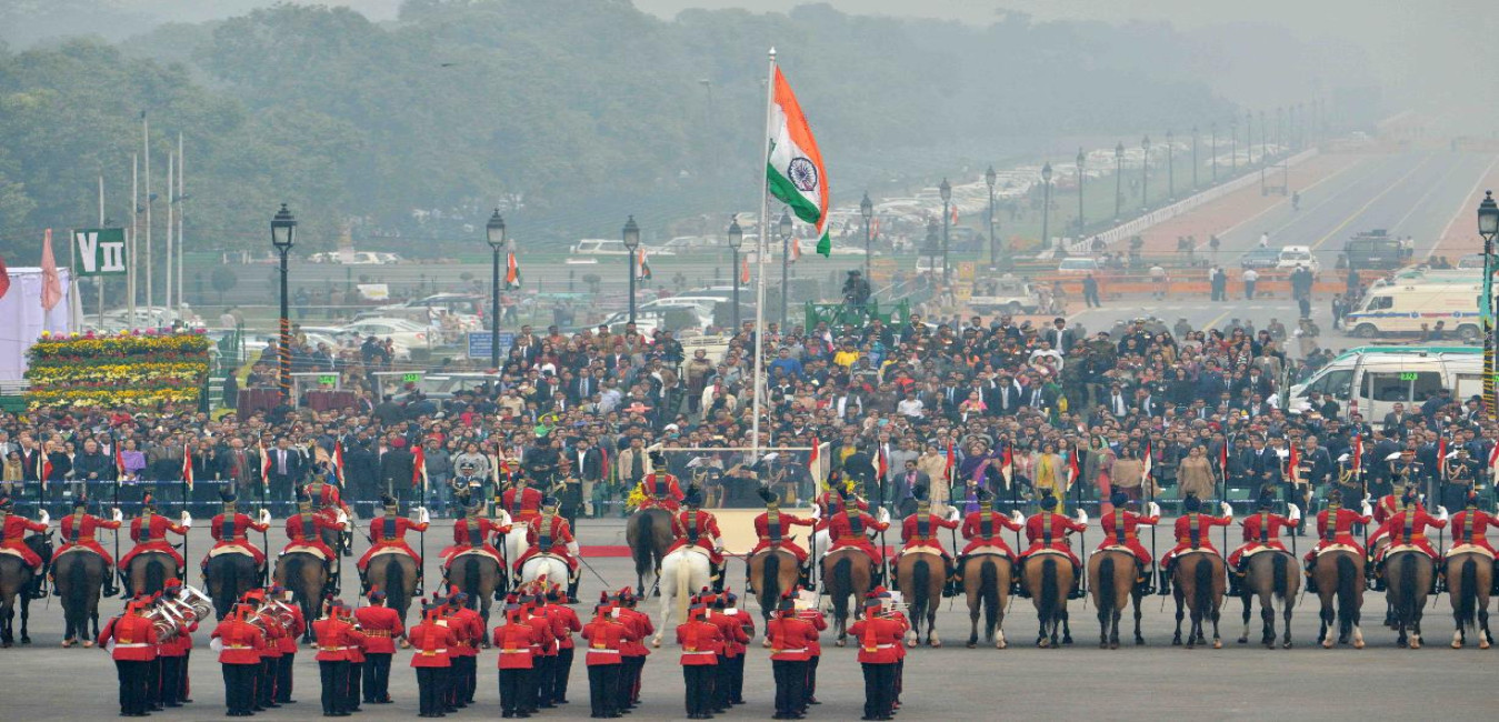 The President of India, Shri Pranab Mukherjee witnessing the Republic Day Parade together with the Chief Guest of the Republic Day Celebrations H.E. Mr. Francois Hollande, President of the French Republic at Rajpath in New Delhi on January 26, 2016.