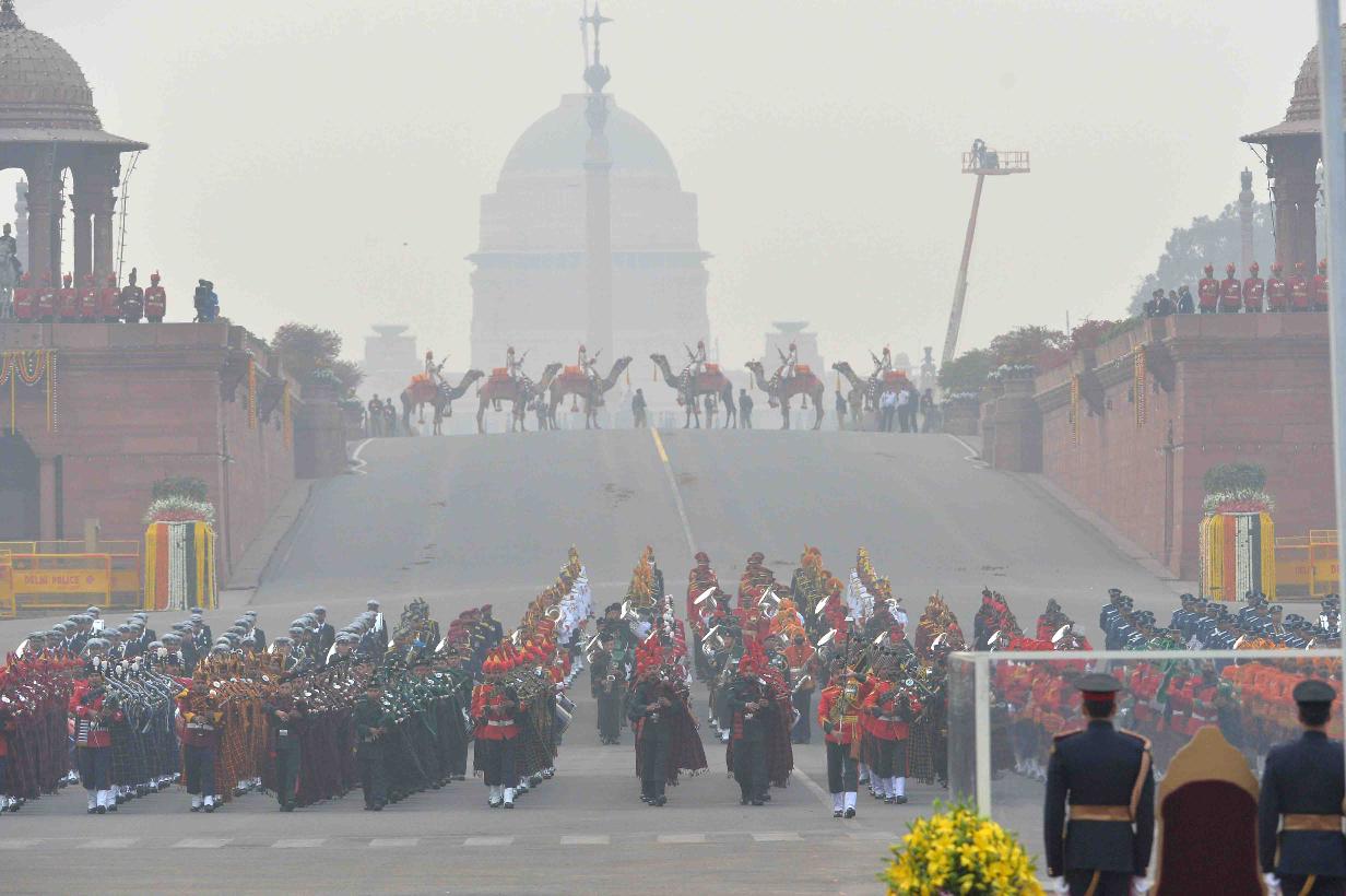 The President of India, Shri Pranab Mukherjee taking Salute at the 'Beating Retreat', at Vijay Chowk, in New Delhi on January 29, 2016.