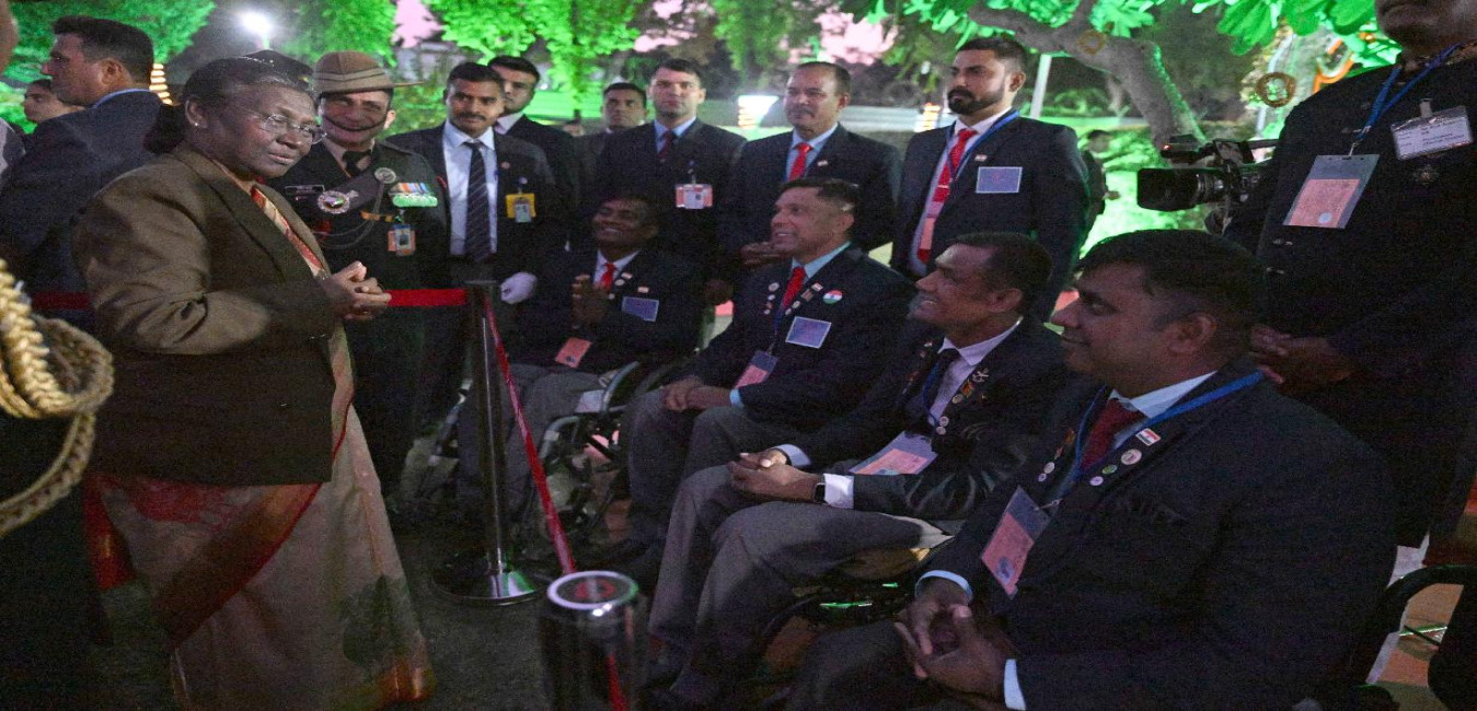 The President of India, Smt. Droupadi Murmu attending 'At Home' reception, on the eve of Vijay Diwas, at Army House, in New Delhi on December 15, 2022.