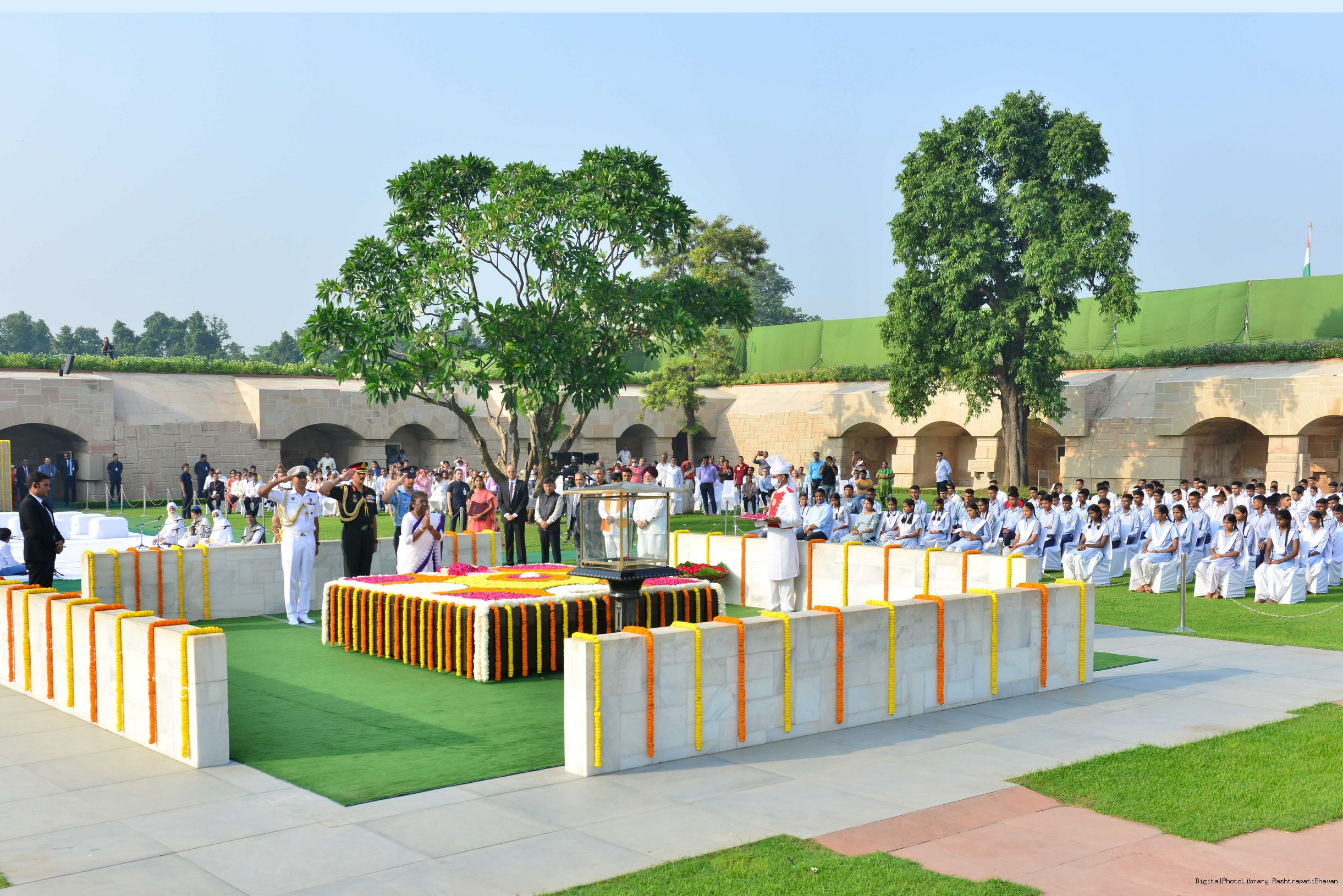 The President of India, Smt. Droupadi Murmu paid tributes to Shri Lal Bahadur Shastri, former Prime Minister of India, on his birth anniversary, at Vijay Ghat, in New Delhi on October 02, 2022.
