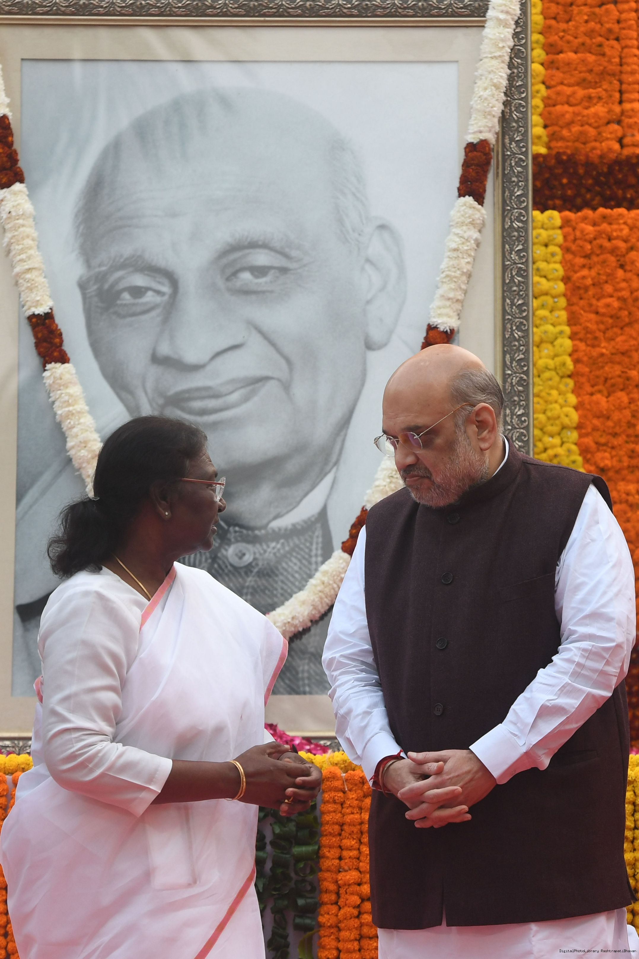 The President of India, Smt. Droupadi Murmu paid floral tributes to Sardar Vallabhbhai Patel on his birth anniversary, at Patel Chowk, in New Delhi on October 31, 2022.