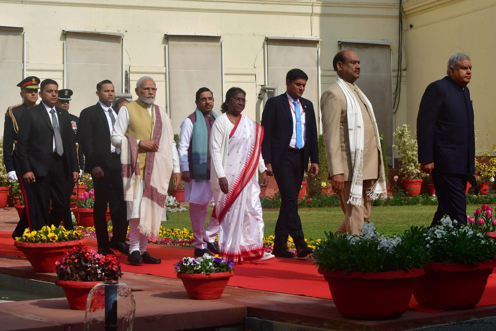 The President of India, Smt. Droupadi Murmu in a ceremonial procession towards the Central Hall to address the joint sitting of the two Houses of Parliament ahead of the Budget Session, in New Delhi on January 31, 2023.
