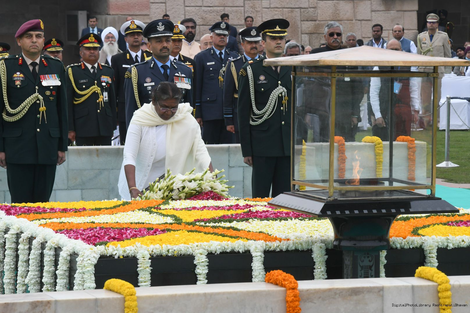 The President of India, Smt. Droupadi Murmu paid homage to Mahatma Gandhi on Martyrs Day and attended Sarva Dharma Prarthana at Rajghat, in New Delhi on January 30, 2023.