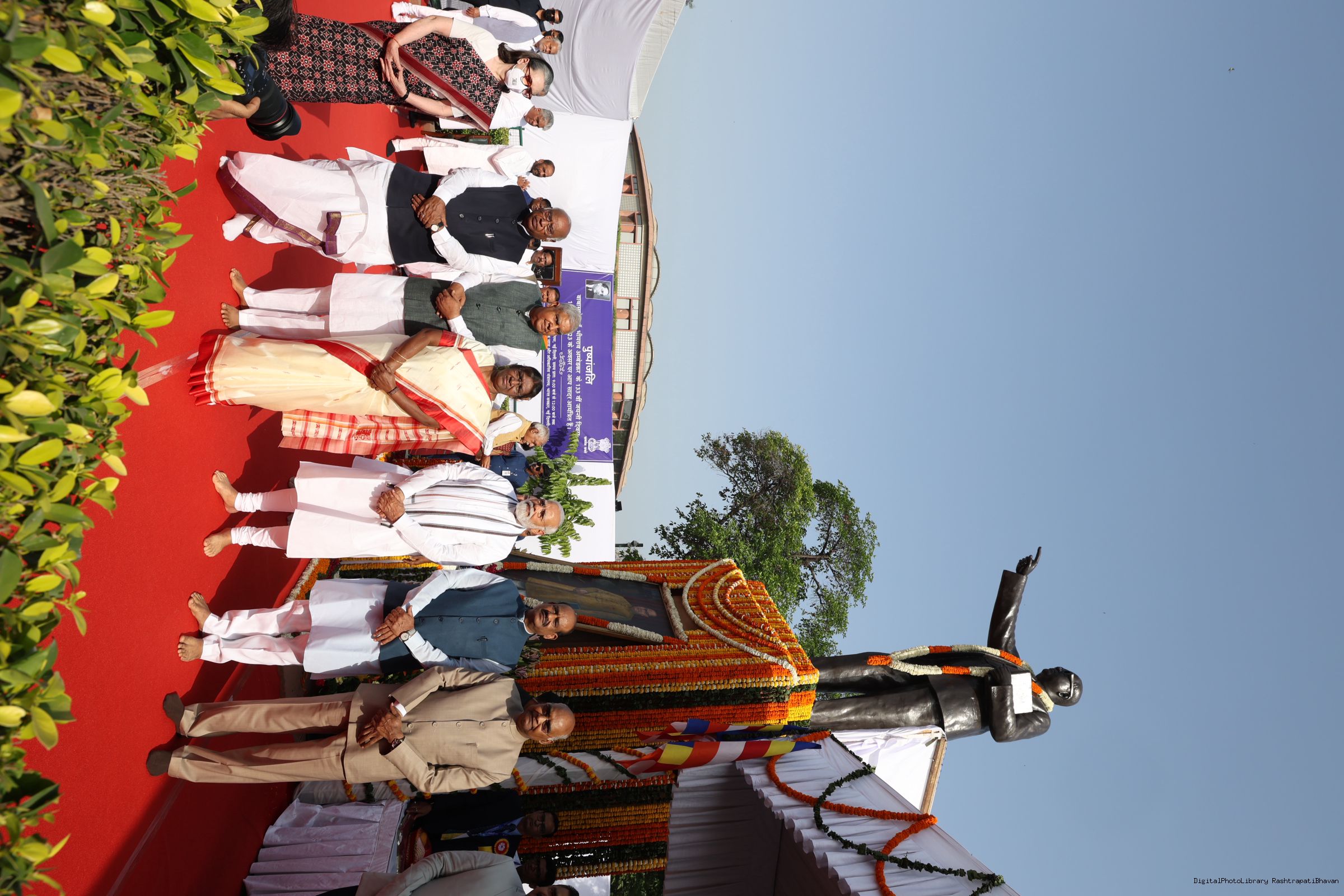 The President of India, Smt. Droupadi Murmu paying floral tributes to Babasaheb Dr. B.R. Ambedkar on his birth anniversary, in New Delhi on April 14, 2023.