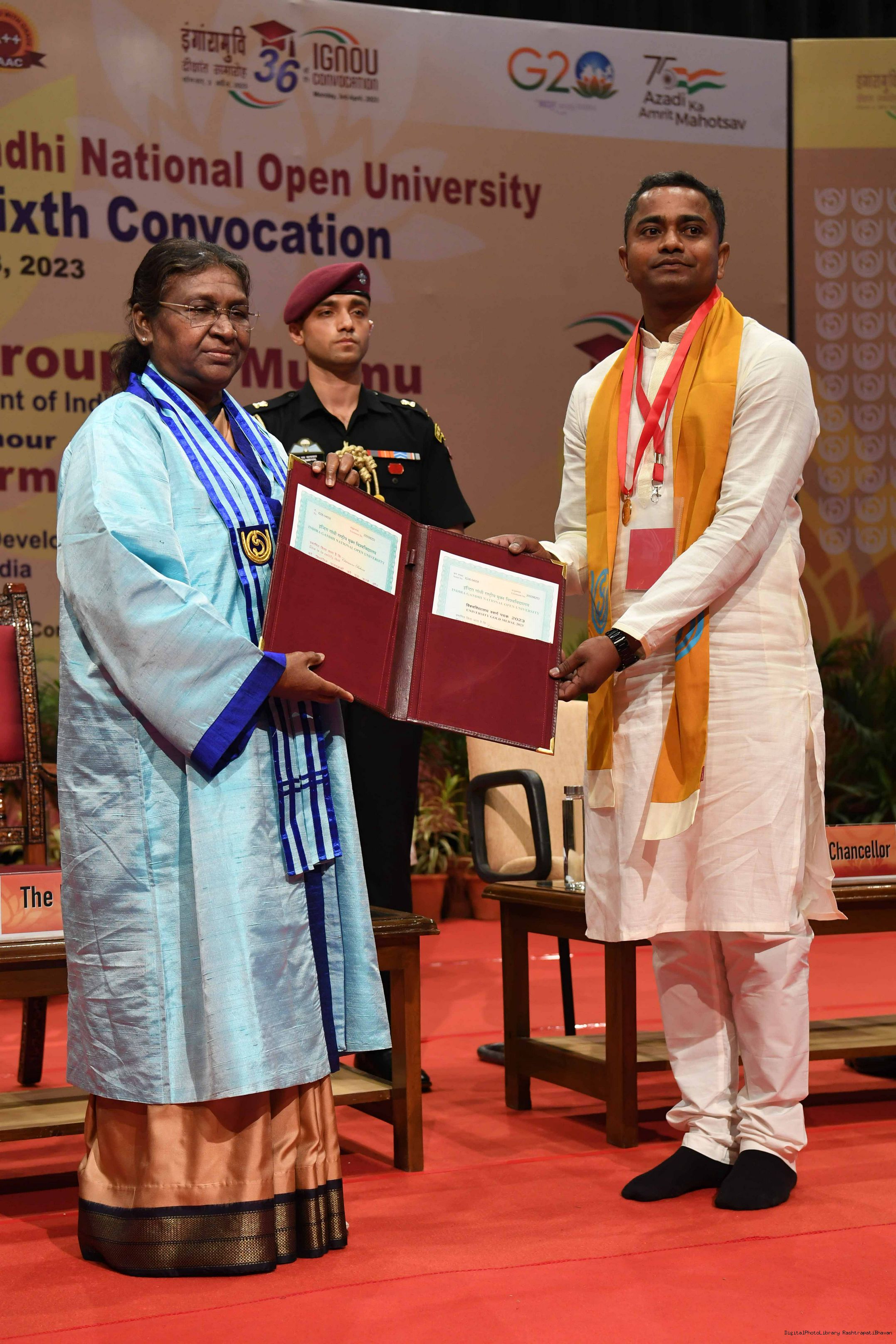 The President of India, Smt Droupadi Murmu gracing the 36th convocation of Indira Gandhi National Open University (IGNOU) at Maidan Garhi in New Delhi on April 03, 2023.