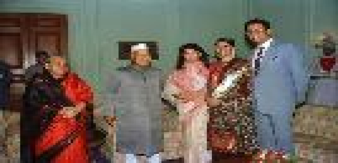 The President of India, Dr. Shankar Dayal Sharma meeting with Kum. Sushmita Sen, Miss Universe (1994) with others at Rashtrapati Bhavan in New Delhi on September 13, 1994.