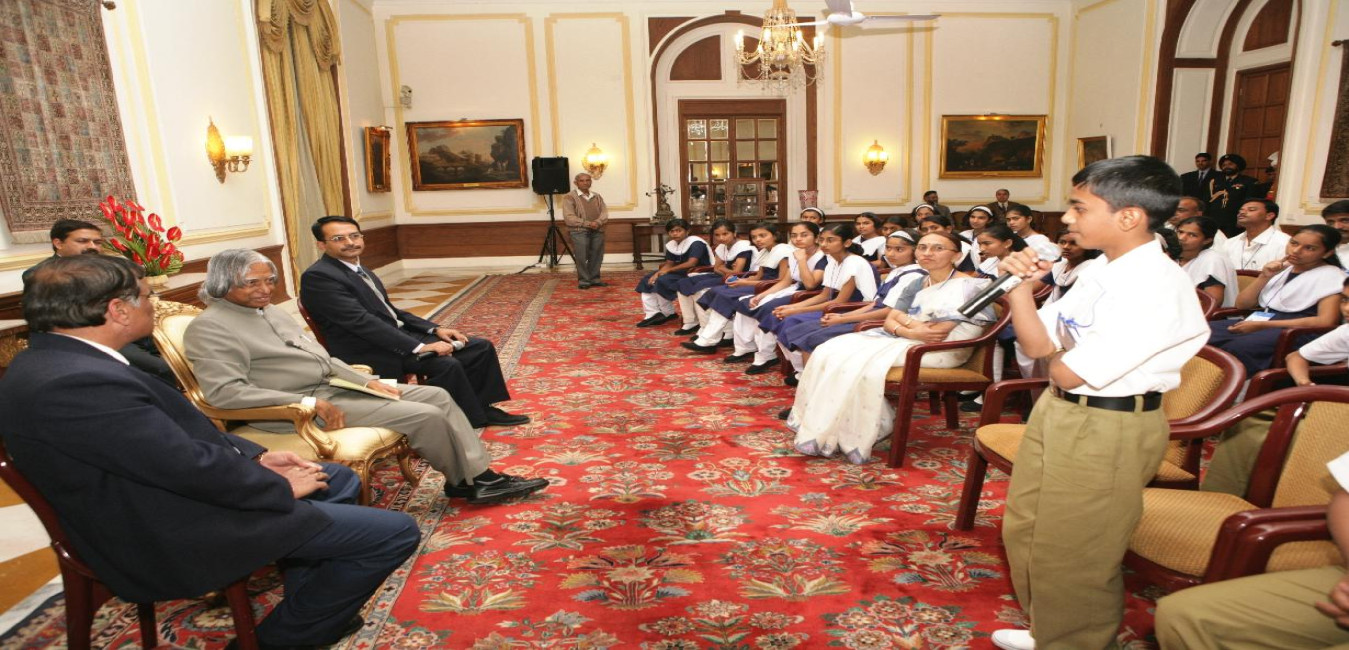 The Students from Pratibha Niketan High School, Nanded calling on the President of India, Dr A P J Abdul Kalam at the Yellow Drawing Room of Rashtrapati Bhavan in New Delhi on Dec 28, 2006