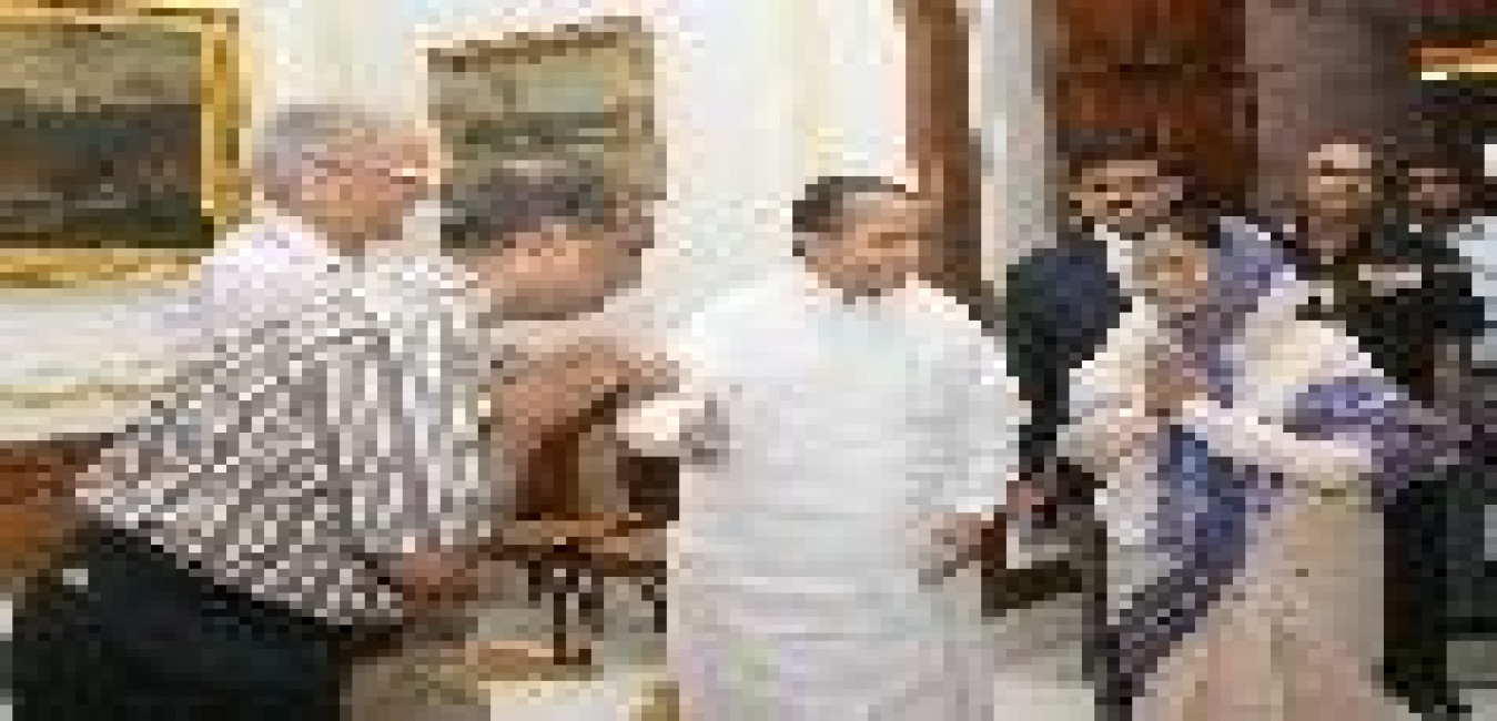 The President of India, Smt Pratibha Devisingh Patil interacting with the Former Prime Minister of India, Shri V P Singh alongwith a Delegation from World Sufi Council at Committee Room of Rashtrapati Bhavan in New Delhi on Oct 19, 2007