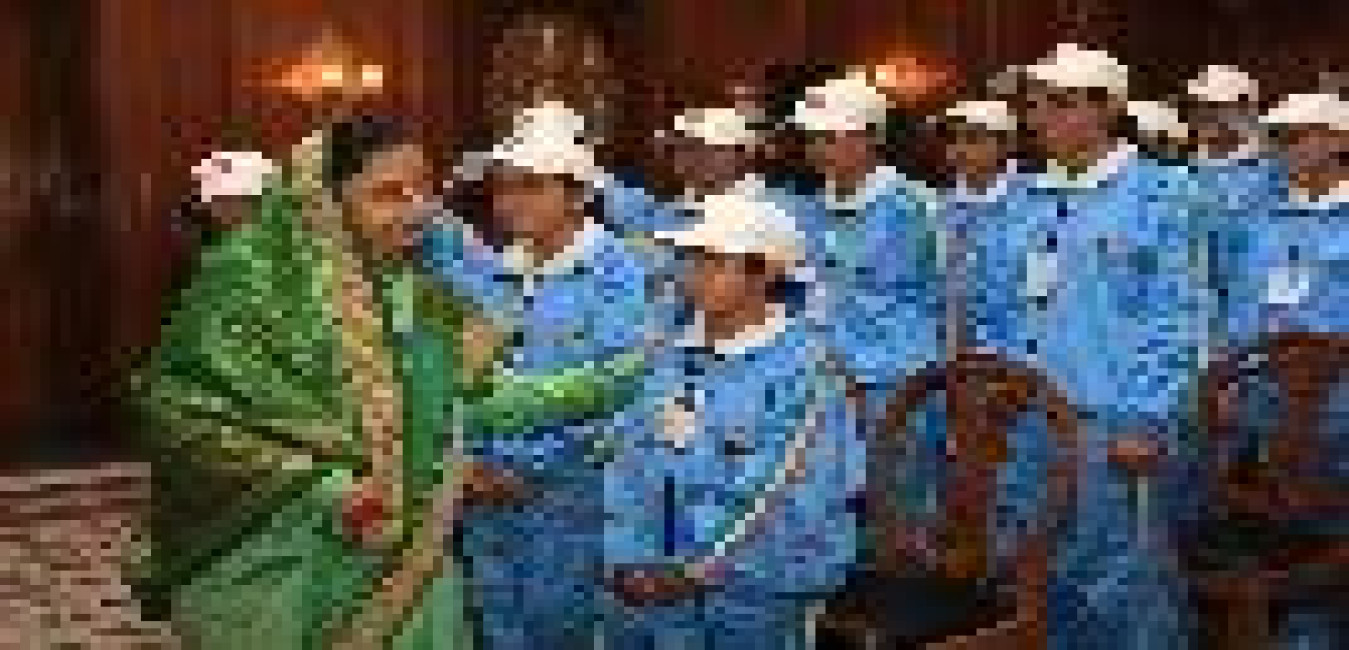 The President of India, Smt Pratibha Devisingh Patil posing for a Group Photo with Naval Band at Rashtrapati Bhavan in New Delhi on Dec 04, 2009