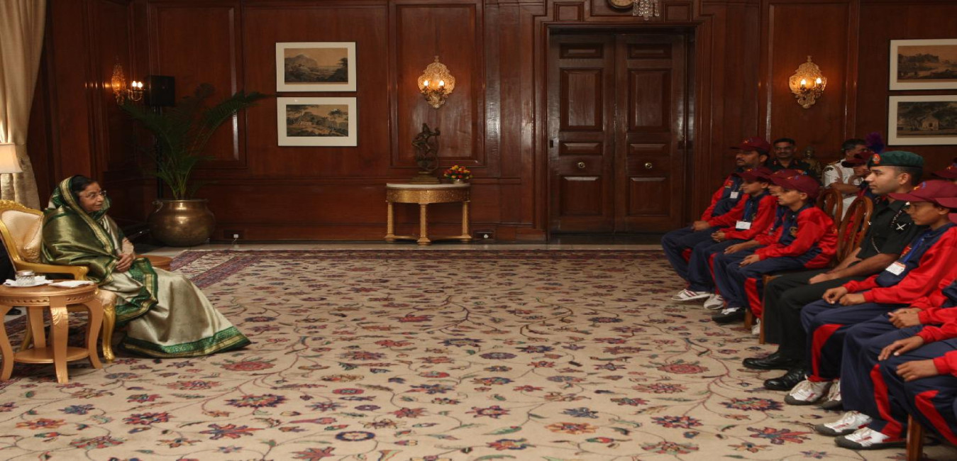The President of India, Smt Pratibha Devisingh Patil interacting with the Students of Poonch District (Jammu &Kashmir) Under Operation Sadbhavana of the Indian Army at Rashtrapati Bhavan in New Delhi on Dec 14, 2010