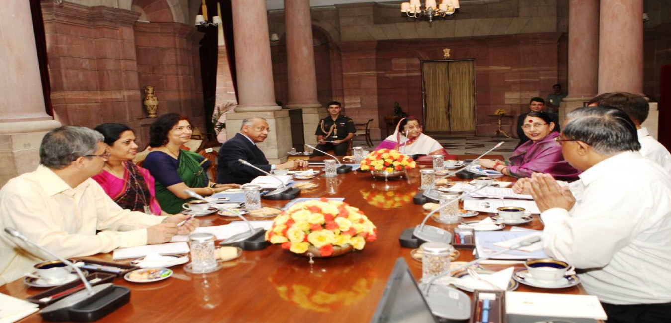 The President of India, Smt Pratibha Devisingh Patil interacting with the Delegation from Centre for Handloom Information & Policy Advocacy at Rashtrapati Bhavan in New Delhi on April 07, 2011