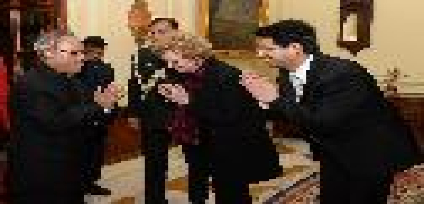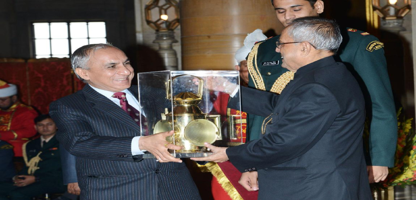 The President of India, Shri Pranab Mukherjee presenting the International Gandhi Award for the year 2013 to Dr Vijaykumar Vinayak Dongre and Prof Guocheng Zhang for making their outstanding contribution in the field of leprosy at Rashtrapati Bhavan in New Delhi on Feb 15, 2014