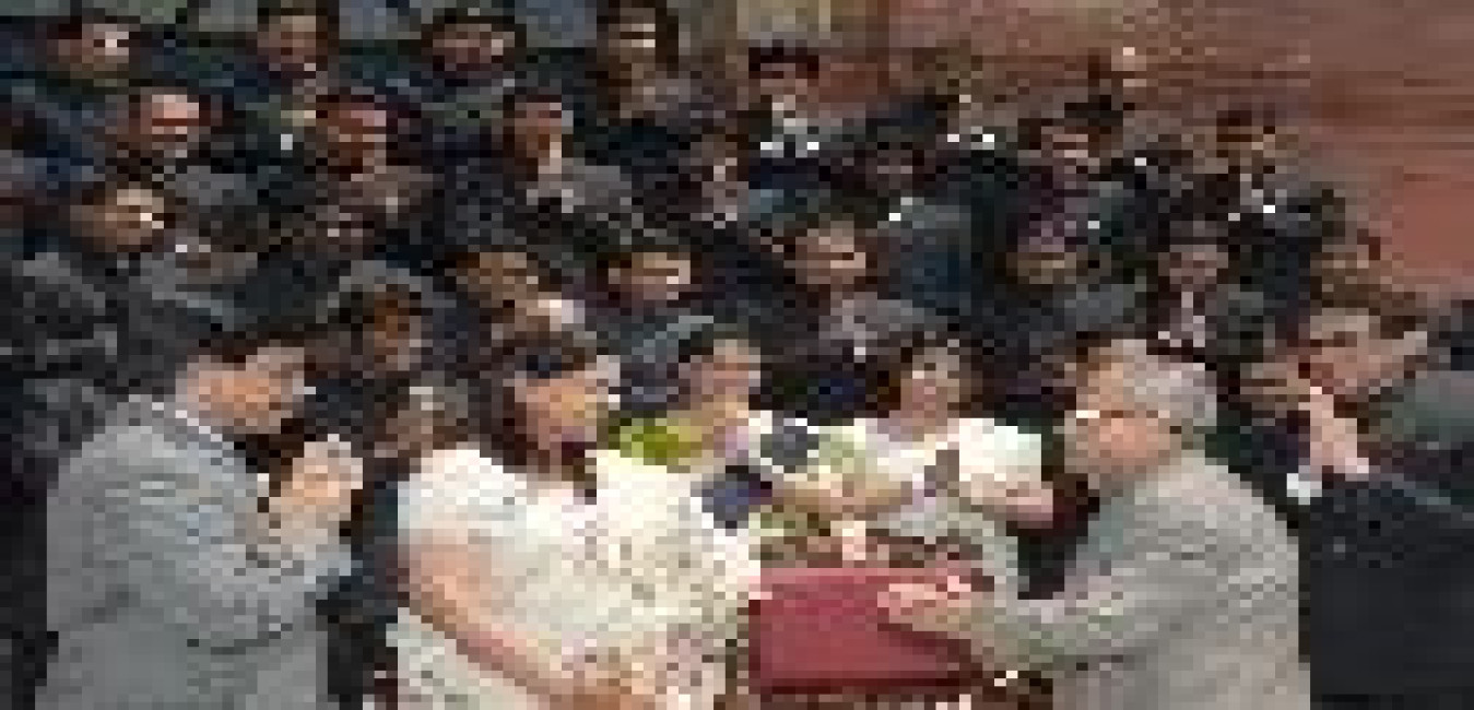 The President of India, Shri Pranab Mukherjee administering the oath of the office to Shri Rajendra Mal Lodha as the Chief Justice of the Supreme Court of India at the Swearing-in-Ceremony at the Durbar Hall of Rashtrapati Bhavan in New Delhi on April 27, 2014