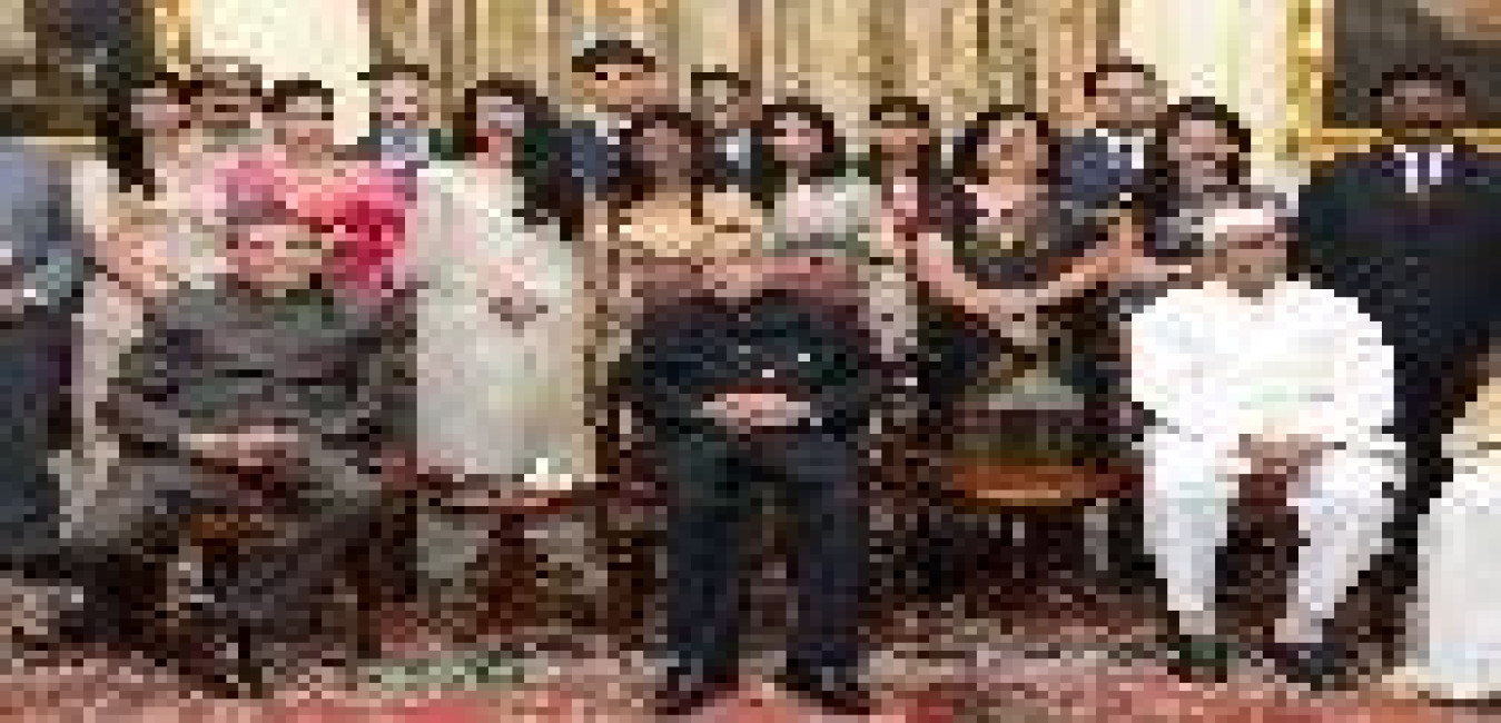 The President of India, Shri Pranab Mukherjee interacting with the Delegation from Bangladesh Hindu Buddhist Christian Unity Council (BHBCUC), USA led by Shri Sitangshu Guha at Rashtrapati Bhavan in New Delhi on April 21, 2014