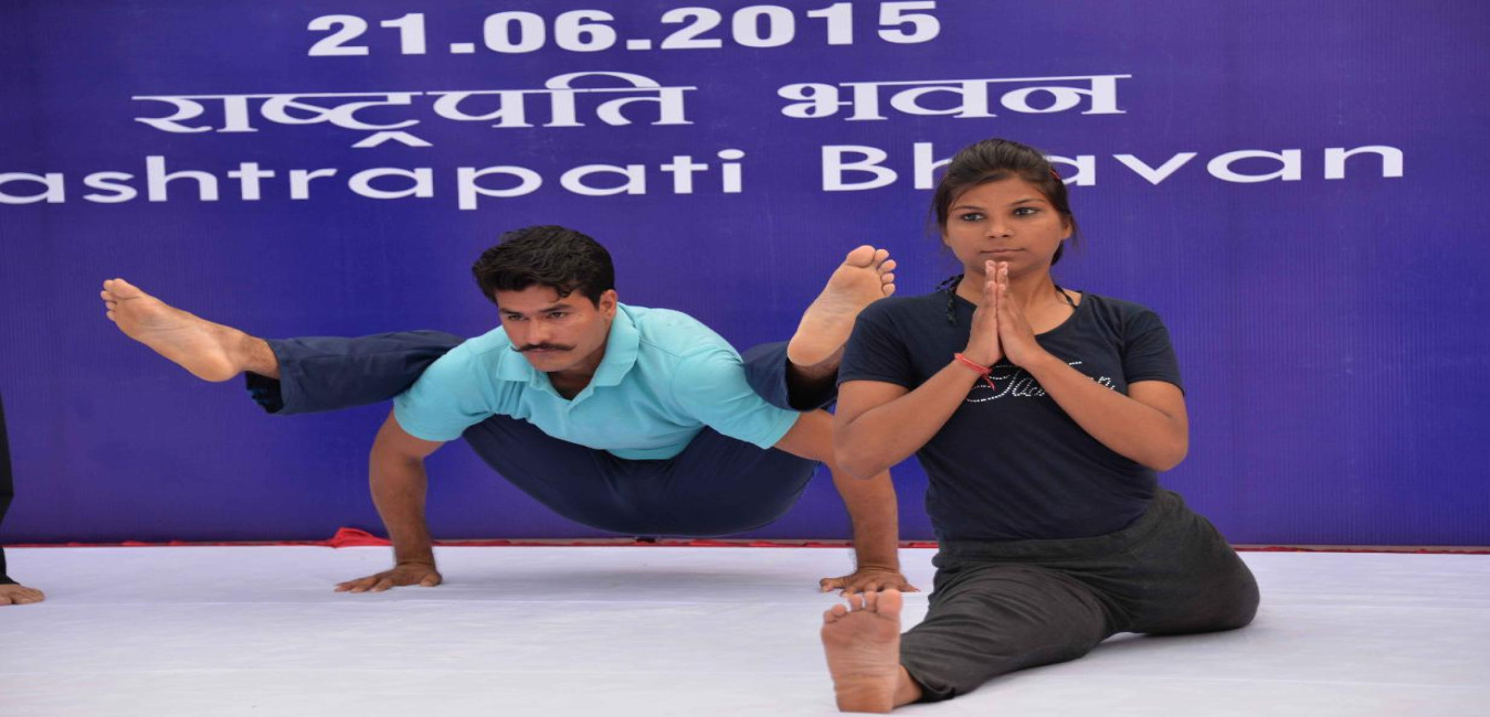 The President of India, Shri Pranab Mukherjee during the inauguration of a mass Yoga event to commemorate the International Yoga Day, at Rashtrapati Bhavan, in New Delhi on June 21, 2015.