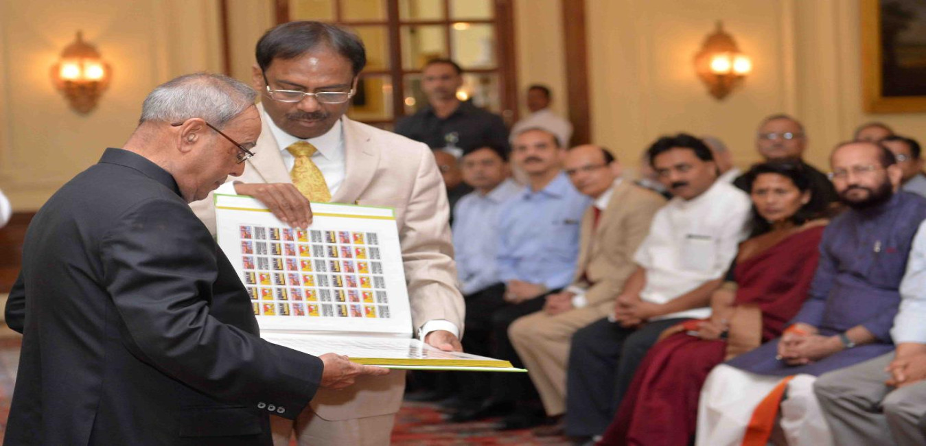 The President of India, Shri Pranab Mukherjee meeting with Shri G. Subba Rao, Director, Delhi International Airport Ltd. alongwith Shri Dixitulu, at Rashtrapati Bhavan, in New Delhi on October 01, 2015.