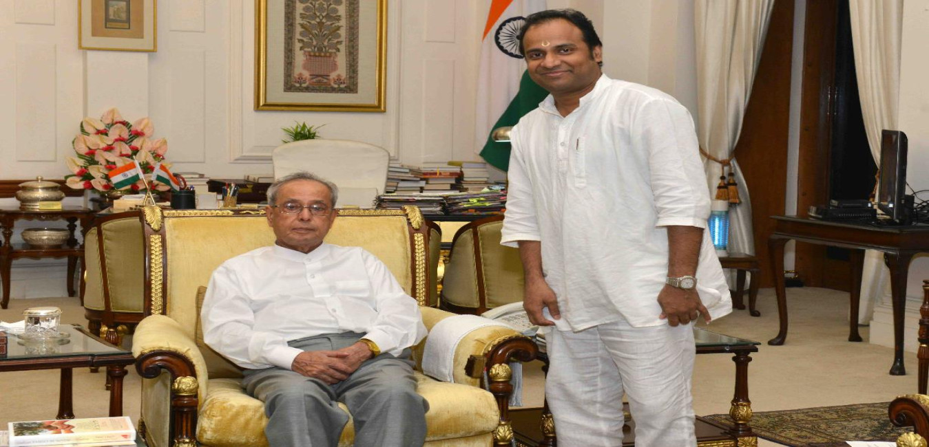 The President of India, Shri Pranab Mukherjee meeting with Shri D. Kalidas, Member, AICC, at Rashtrapati Bhavan, in New Delhi on October 05, 2015.