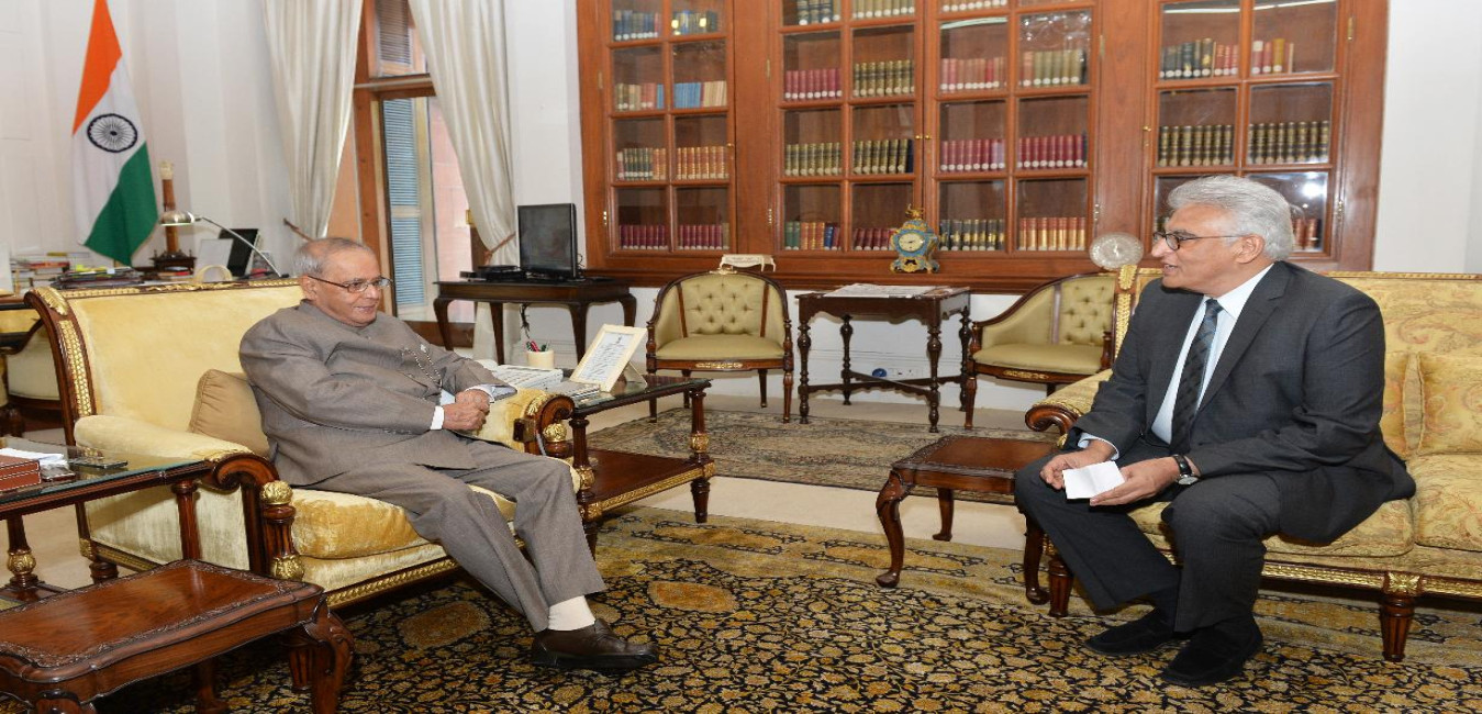 The President of India, Shri Pranab Mukherjee meeting with Prof. (Dr.) Syed Manal Shah Alquadri, former Ambassador of India to Uzbekistan, at Rashtrapati Bhavan, in New Delhi on September 29, 2015.