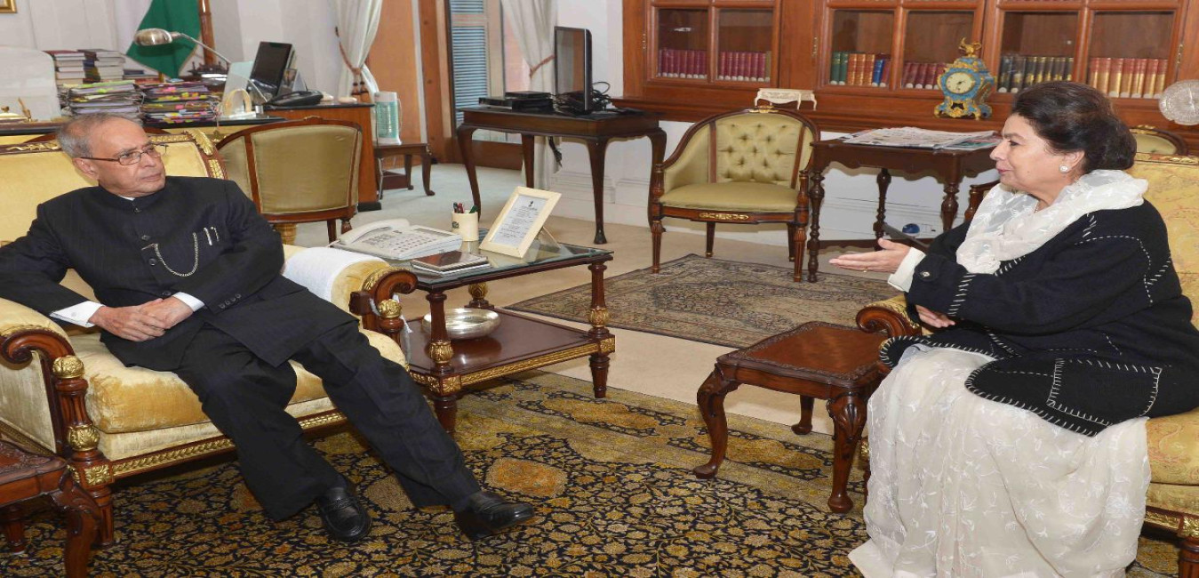 The President of India, Shri Pranab Mukherjee meeting with Begum Noor Bano, Ex-MP (LS), at Rashtrapati Bhavan on February 04, 2016.