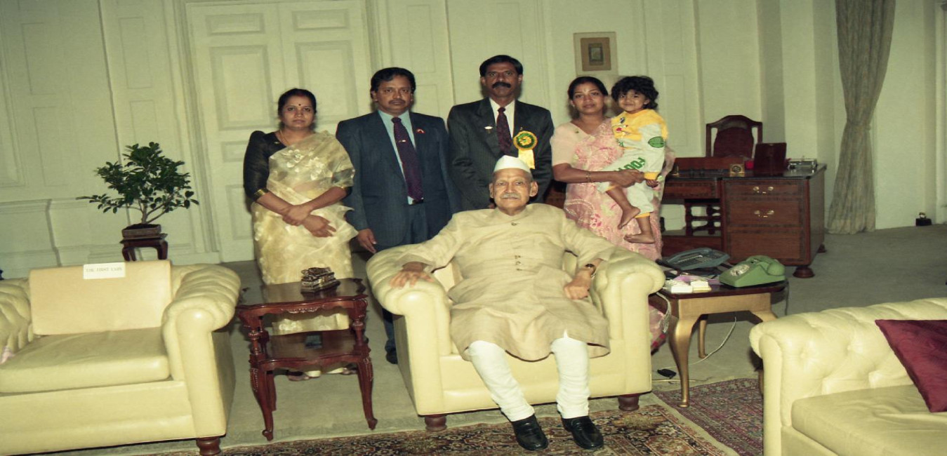 The President of India, Dr. Shankar Dayal Sharma meeting with Captain Sawant during a farewell call, at Rashtrapati Bhavan in New Delhi on August 14, 1995.