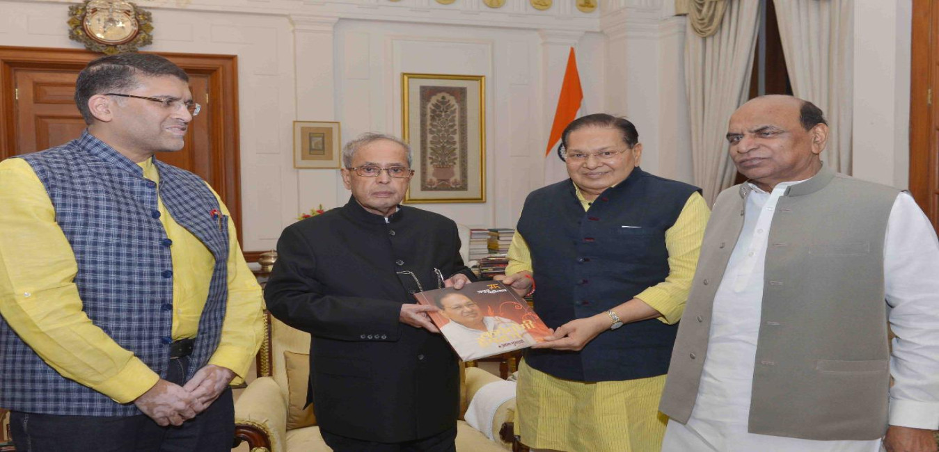 The President of India, Shri Pranab Mukherjee meeting with Shri D.P. Tripathi, MP (RS) alongwith Shri Hemraj Shah, General Secretary, Nationalist Congress Party (NCP) and Shri Arvind Shah, at Rashtrapati Bhavan on April 13, 2016.