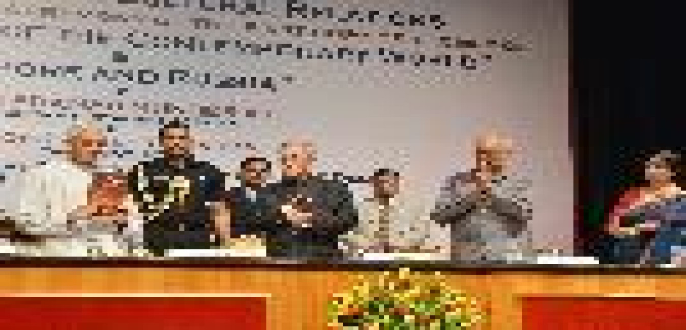The President of India, Shri Pranab Mukherjee receiving the first copy of the book Tagore s Vision of the Contemporary World and Tagore and Russia published by Indian Council for Cultural Relations (ICCR), at Rashtrapati Bhavan on May 16, 2016.