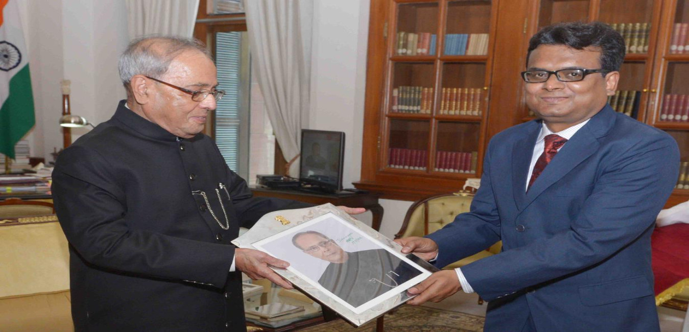 The President of India, Shri Pranab Mukherjee meeting with Dr. Siddharth Chatterjee, at Rashtrapati Bhavan on July 04, 2016.