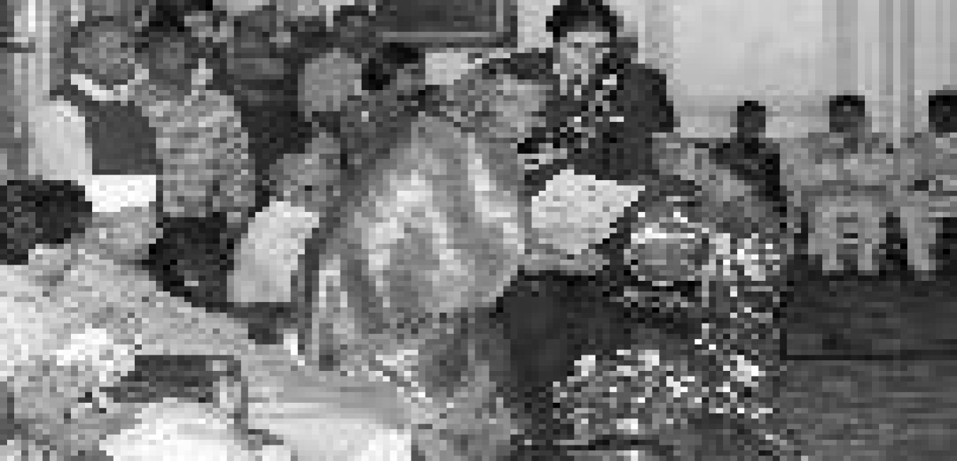 The President of India, Dr. Shankar Dayal Sharma meeting with the members of Sri Dharmik Leela Committee led by Shri Bansi Dhar Gupta at Rashtrapati Bhavan in New Delhi on November 13, 1995.