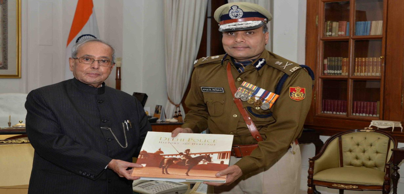 The President of India, Shri Pranab Mukherjee meeting with Shri Amulya Patnaik, Commissioner, Delhi Police, at Rashtrapati Bhavan on February 08, 2017.