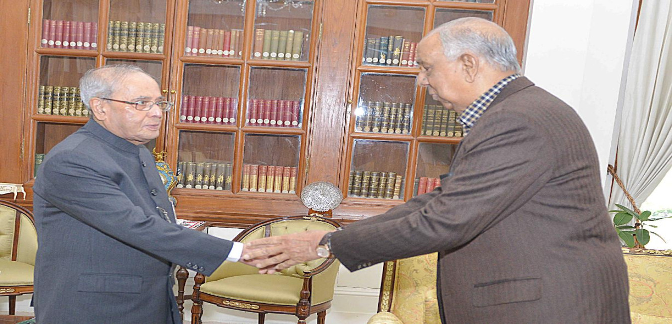 The President of India, Shri Pranab Mukherjee meeting with Shri S.K. Birla, Director Emeritus, Birla Brothers Pvt Limited, Kolkata, at Rashtrapati Bhavan on February 28, 2017.