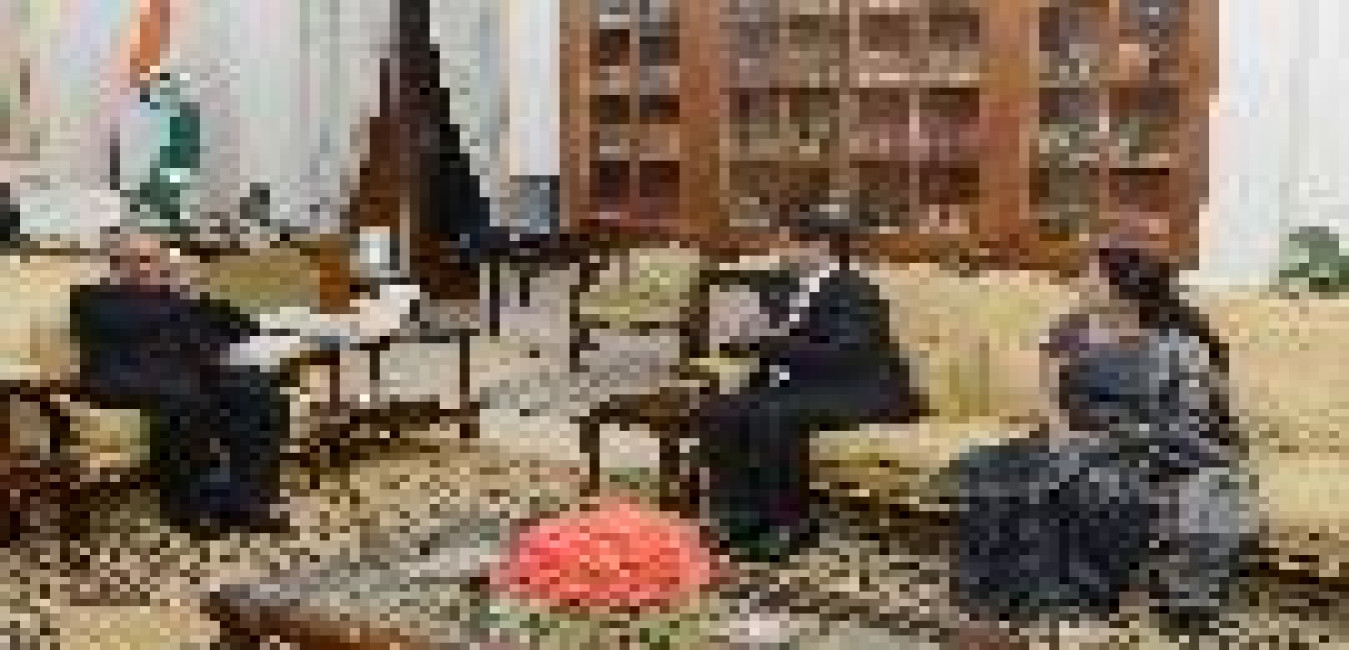 The President of India, Shri Pranab Mukherjee meeting with Shri Ajoy Kumar Das alongwith his son Shri Sevabrata Das and Shri Dinkar Rao, at Rashtrapati Bhavan on May 27, 2017.