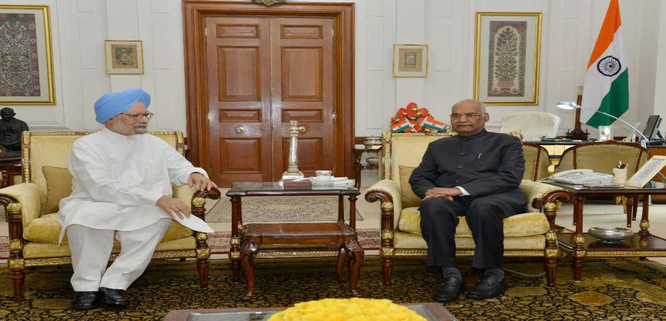 The former Prime Minister of India, Dr. Manmohan Singh calling on the President of India, Shri Ram Nath Kovind, at Rashtrapati Bhavan on July 27, 2017.