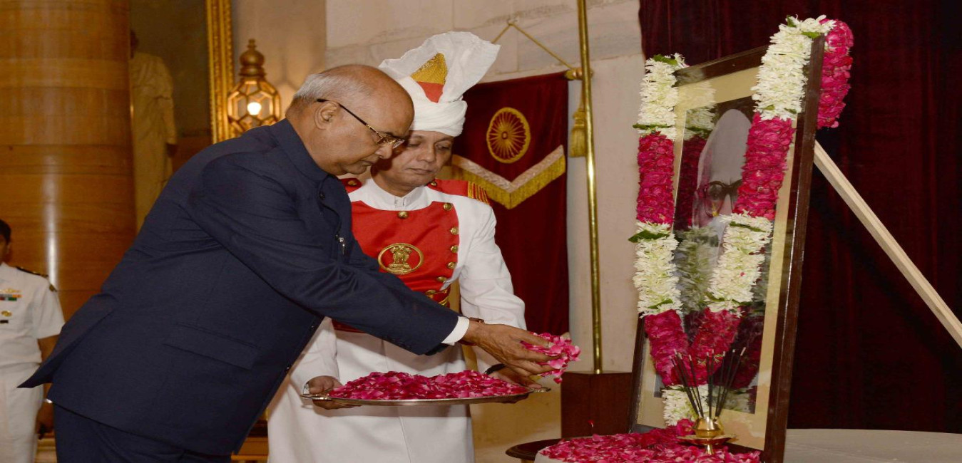 The President of India, Shri Ram Nath Kovind paying floral tributes at the Portrait of former President of India, Dr. V.V. Giri, on his Birth Anniversary, at Rashtrapati Bhavan on August 10, 2017