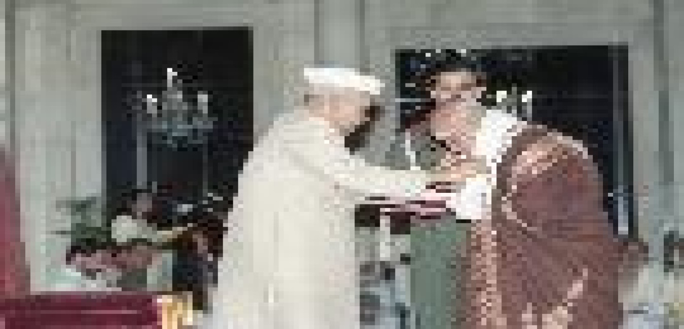 The President of India, Dr. Shankar Dayal Sharma attending Sai Bhajans at Rashtrapati Bhavan in New Delhi on July 31, 1996.