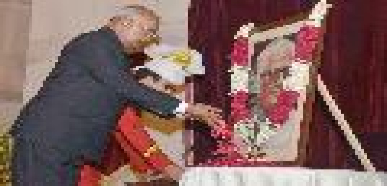 The President of India, Shri Ram Nath Kovind paying floral tributes to Dr. Rajendra Prasad, the first President of India, on his birth anniversary, at Rashtrapati Bhavan on December 03, 2017. Family members of Dr. Rajendra Prasad also paid tributes to him on the occasion.