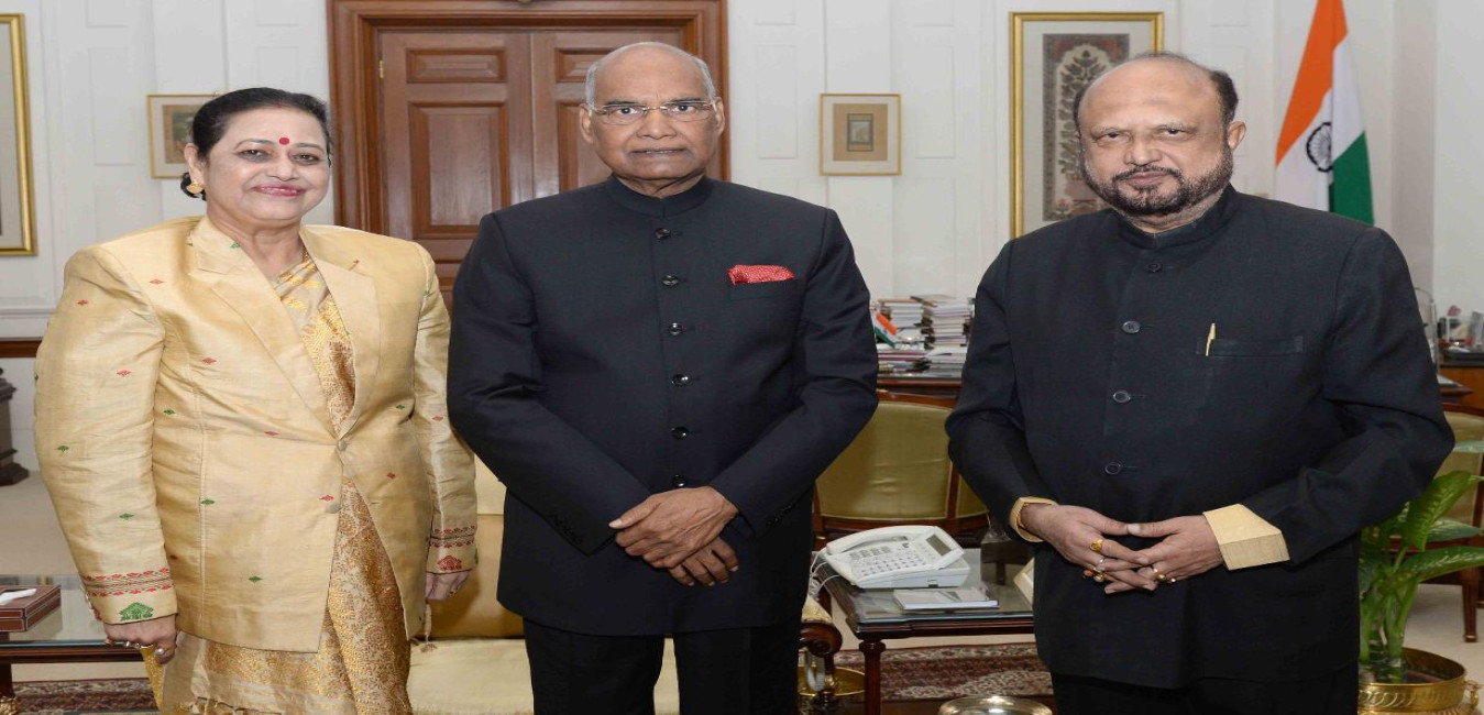 The Ex-Chief Minister of Assam, Shri P.K. Mahanta and the Ex-MP (RS), Smt. Jai Shree Mahanta meeting with the President of India, Shri Ram Nath Kovind, at Rashtrapati Bhavan on January 04, 2018.