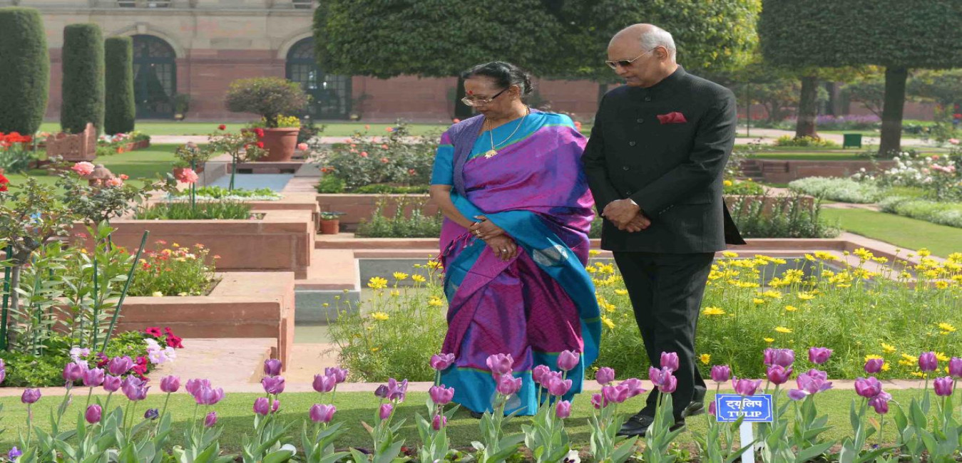 The President of India, Shri Ram Nath Kovind and the First Lady of India, Smt. Savita Kovind walking around at Mughal Garden during the inauguration of Udyanotsav, at Rashtrapati Bhavan on February 05, 2018.