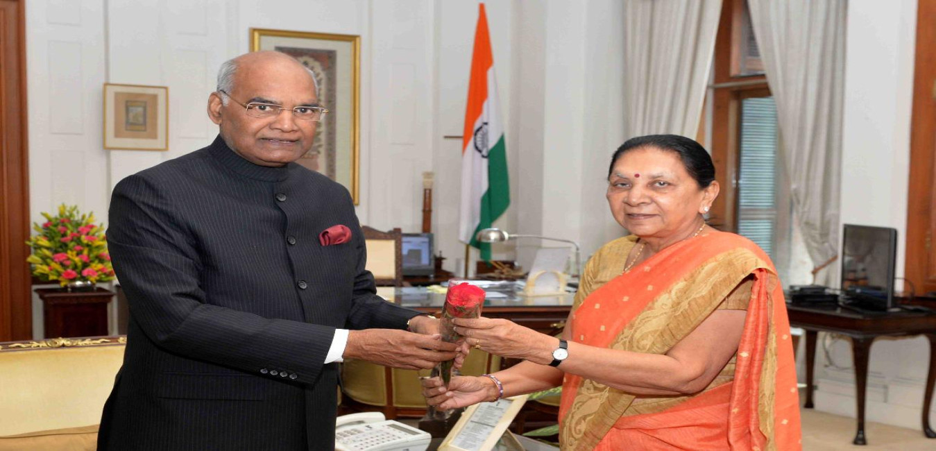The Governor of Madhya Pradesh, Smt. Anandiben Patel calling on the President of India, Shri Ram Nath Kovind, at Rashtrapati Bhavan on February 05, 2018.