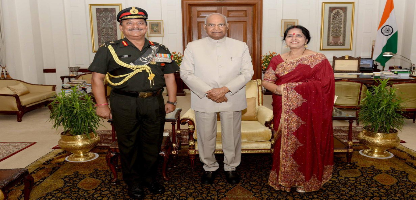 Lt. Gen. A.R. Prasad, Signal Officer-in-Chief & Hony ADC to the President along with his wife Smt. Nishi Prasad meeting with the President of India, Shri Ram Nath Kovind, at Rashtrapati Bhavan on July 04, 2018.