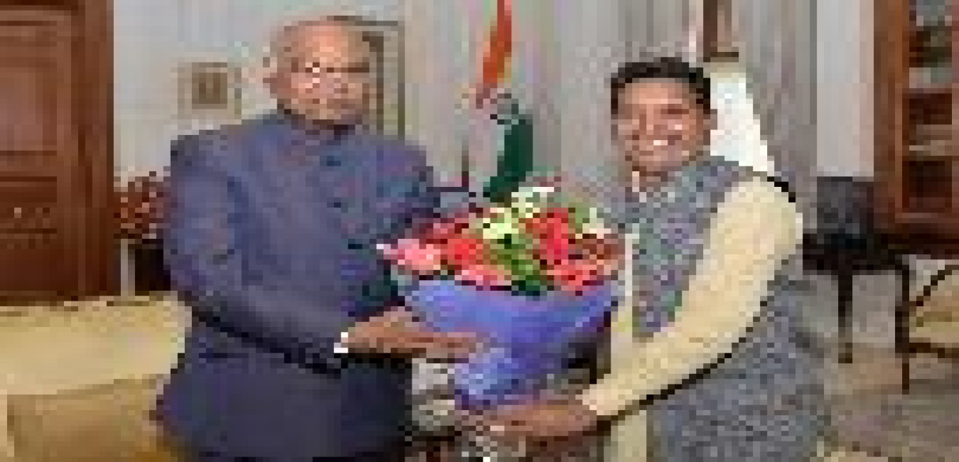 Shri Veereshwar Dwivedi meeting with the President of India, Shri Ram Nath Kovind, at Rashtrapati Bhavan on July 11, 2018.