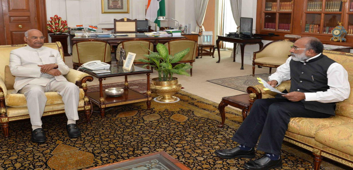 The Leader of Opposition, Kerala Legislative Assembly, Shri Ramesh Chennithala calling on the President of India, Shri Ram Nath Kovind, at Rashtrapati Bhavan on July 23, 2018.