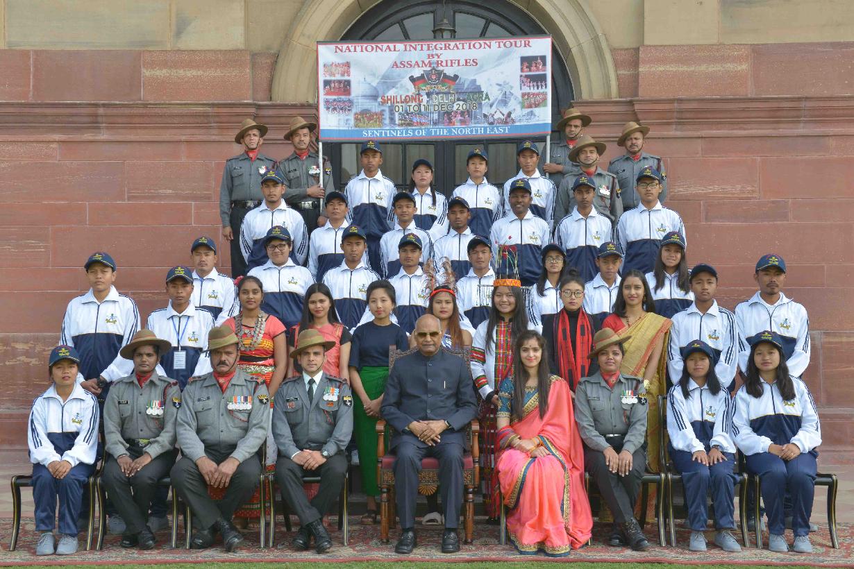 The President of India, Shri Ram Nath Kovind meeting with the students from Shillong, Meghalaya attending National Integration Tour, organised by 46 Assam Rifles, at Rashtrapati Bhavan on December 05, 2018.