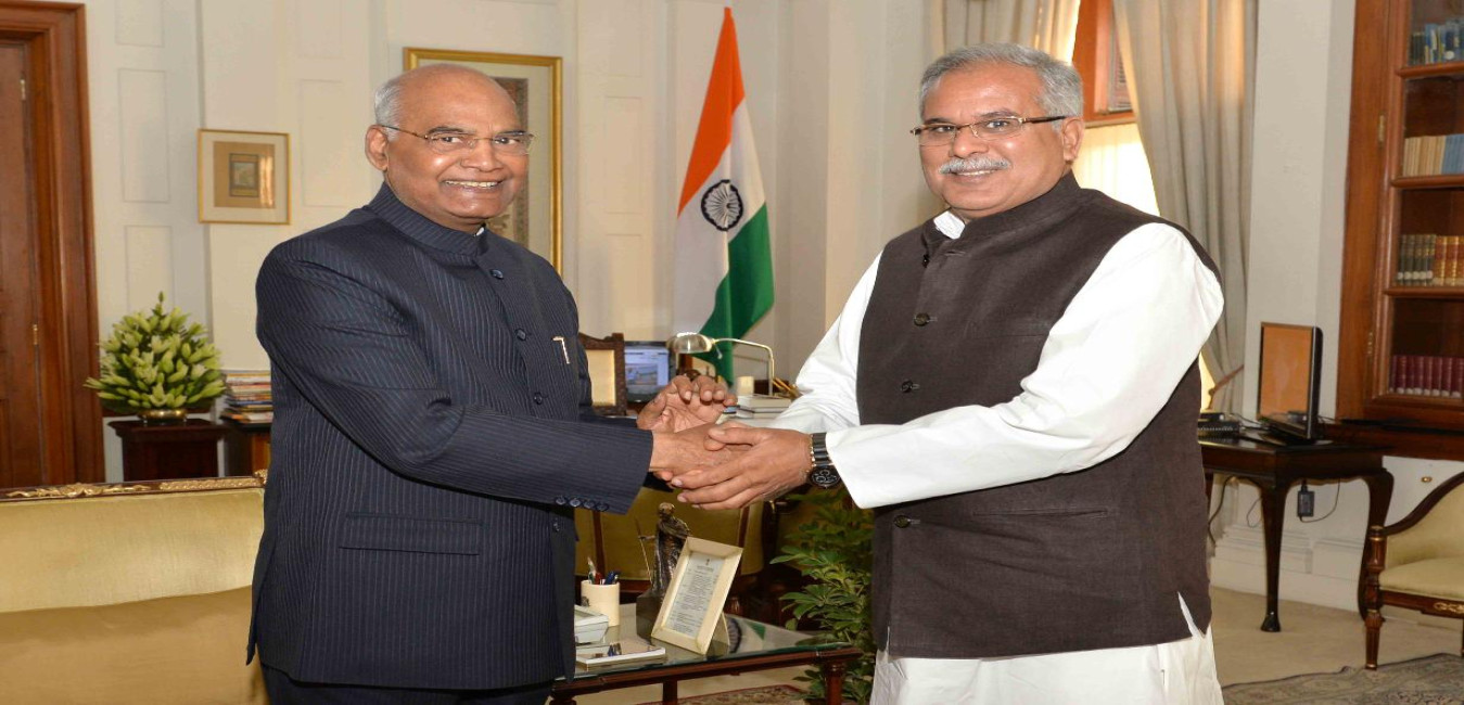 The Chief Minister of Chhattisgarh, Shri Bhupesh Baghel meeting with the President of India, Shri Ram Nath Kovind, at Rashtrapati Bhavan on March 07, 2019.