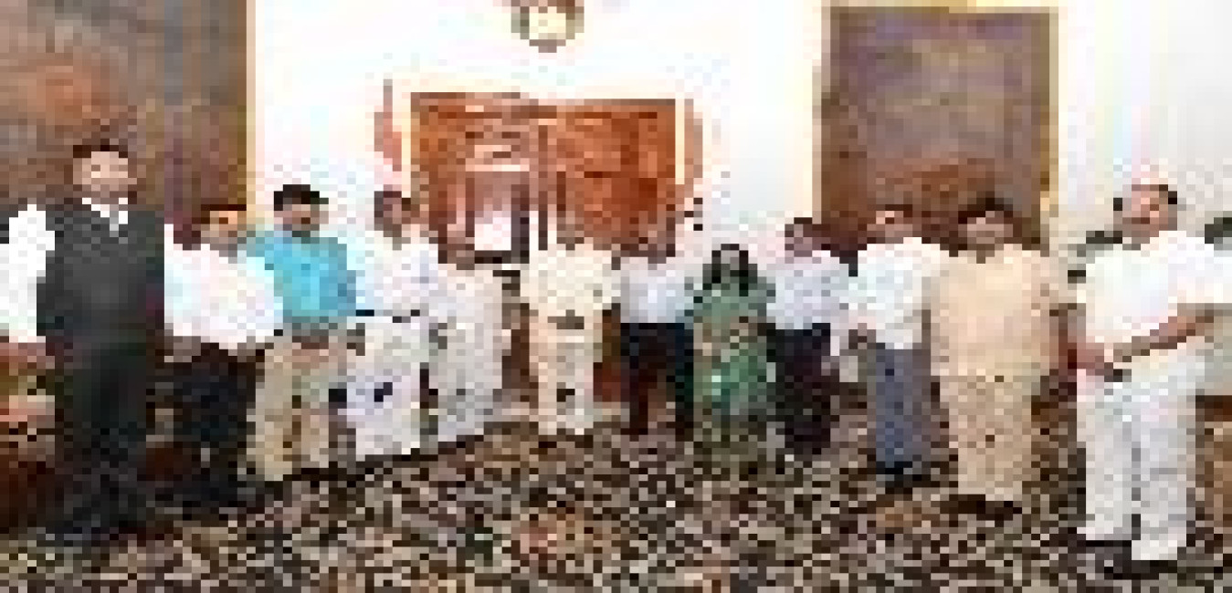 Shri Veereshwar Dwivedi, Vishwa Hindu Parishad, New Delhi with others meeting with the President of India, Shri Ram Nath Kovind, at Rashtrapati Bhavan on April 29, 2019.