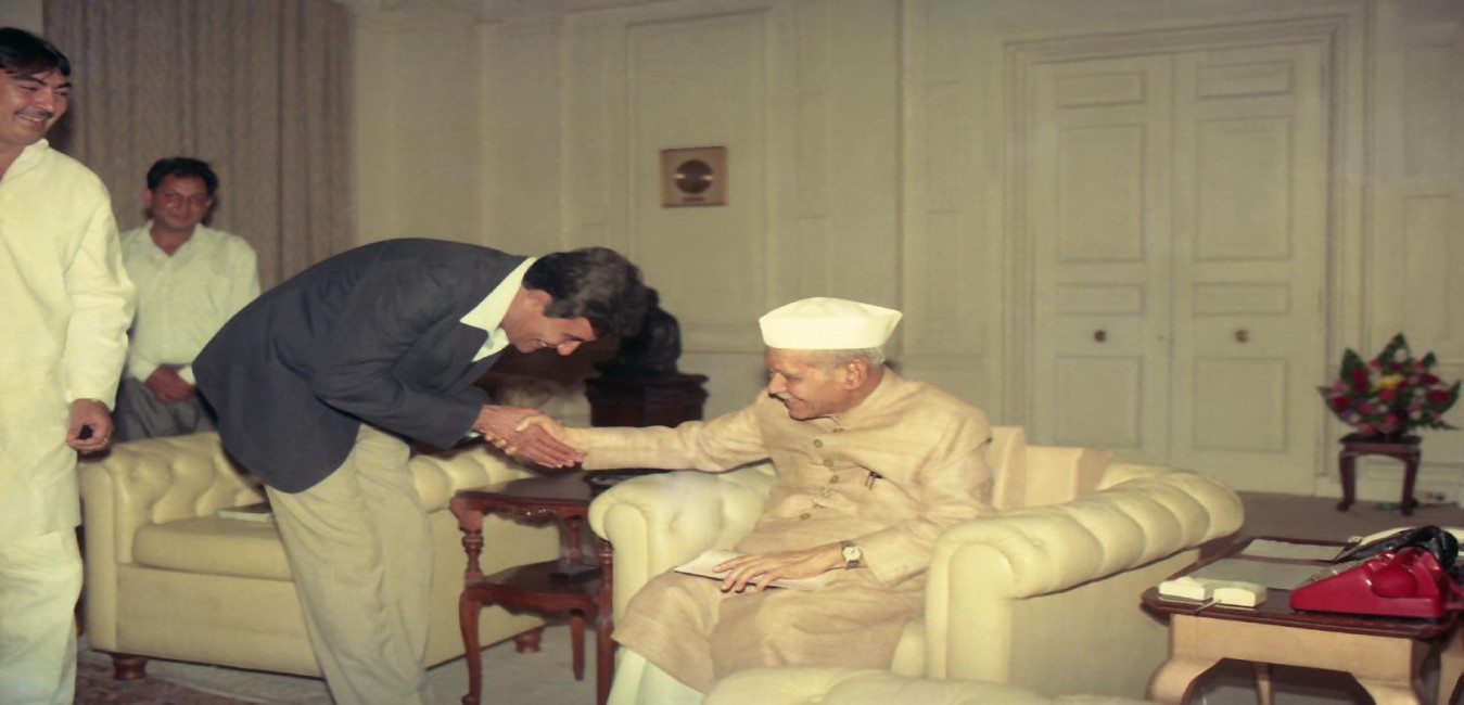 The President of India, Dr. Shankar Dayal Sharma meeting with Shri Salim Durani with others at Rashtrapati Bhavan in New Delhi on March 30, 1994.
